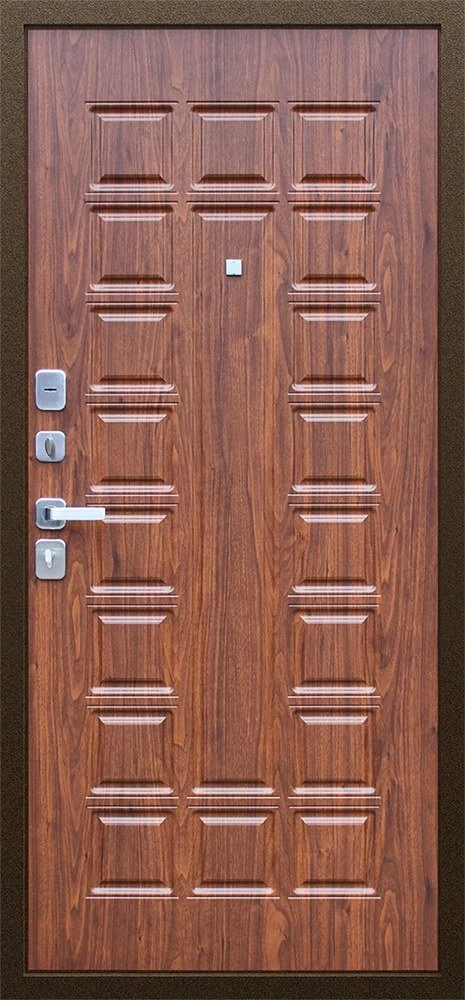 Надежная входная Дверь Спартак Орех темный премиум класса по цене 34 847 руб. Большая толщина стали защитит от проникновения в ваш дом, квартиру или коттедж. Используется очень качественная фурнитура: замки, цилиндры, ручки, защелки. Покрытие и отделка двери изготовлено под внимательным контролем производителя. Дверь имеет долгий срок службы и гарантию.