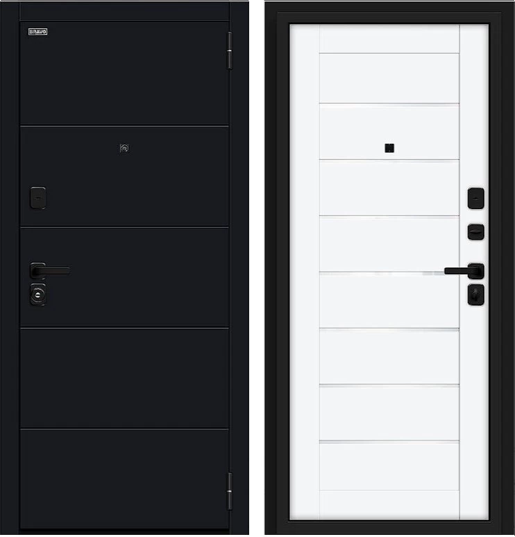Надежная входная Дверь Браво Прайм/SBlack-Black Shell/White Silk премиум класса по цене 40 947 руб. Большая толщина стали защитит от проникновения в ваш дом, квартиру или коттедж. Используется очень качественная фурнитура: замки, цилиндры, ручки, защелки. Покрытие и отделка двери изготовлено под внимательным контролем производителя. Дверь имеет долгий срок службы и гарантию.