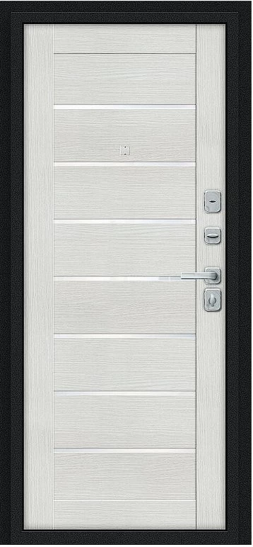 Дверь Браво Техно/BChrome Букле черное/Bianco Melinga - недорогая эконом класса по цене 5 147 руб., отлично подходит для временной установки в квартиру под сдачу, строительство, ремонт. Не смотря стоимость, модель хорошего качества.